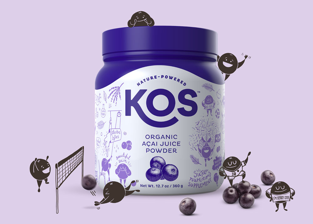 KOS – это американский бренд порошковых БАДов, основанных на растительных компонентах. Это суперфуды с большой питательной ценностью. Владельцы бренда поставили цель – выделиться среди скучных, безэмоциональных конкурентов.