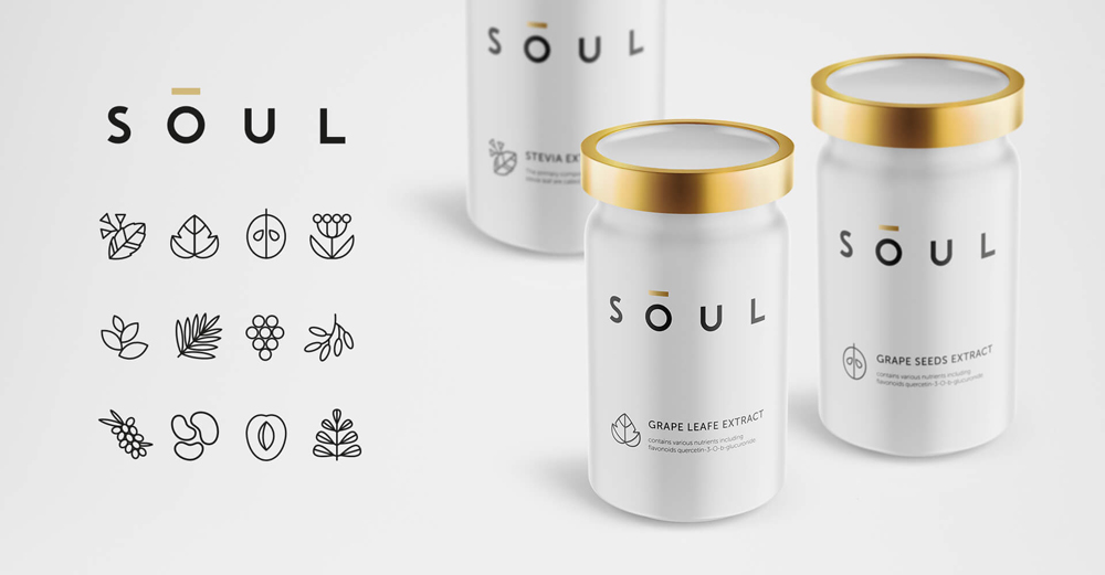 Студия Aida Pioneer разработала бренд натуральных растительных экстрактов, включая название компании и фирменный стиль. Логика была последовательна: растения дышат, растут, размножаются – поэтому они живые. Традиционно считается, что у всего живого есть душа. Иными словами, растительный экстракт, содержащий в себе концентрат природной пользы, является светлой душой растения. Или, по-английски, SOUL.