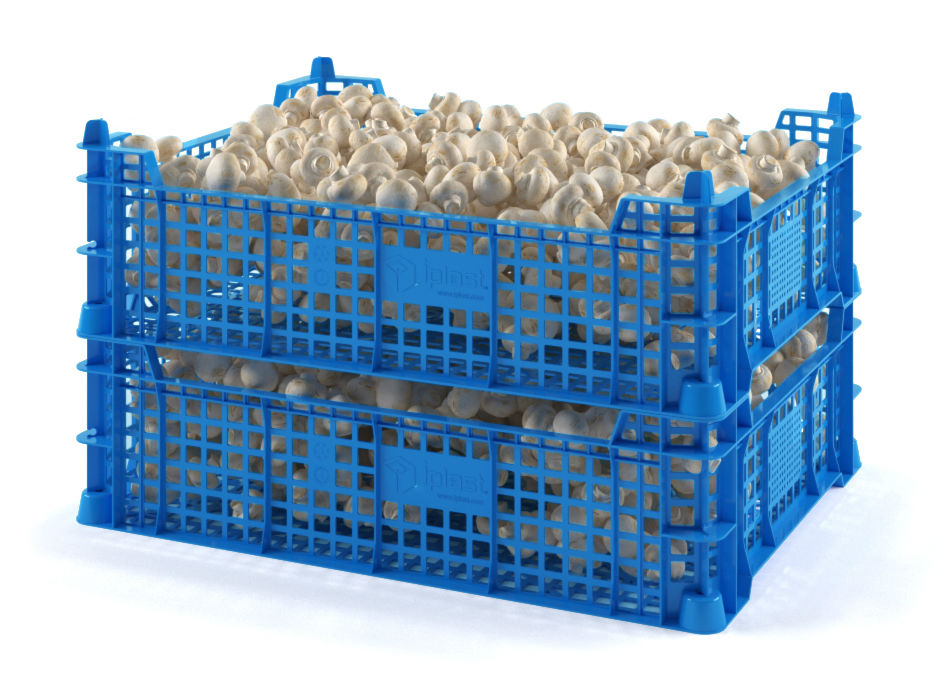 Гладкая внутренняя поверхность нового грибного ящика обеспечивает максимальную сохранность помещенных внутрь продуктов. Размеры ящика (400х300х 110 мм) пропорциональны стандартному поддону 1200х800 мм: на один поддон в 1 ярус компактно помещается 8 грибных ящиков.