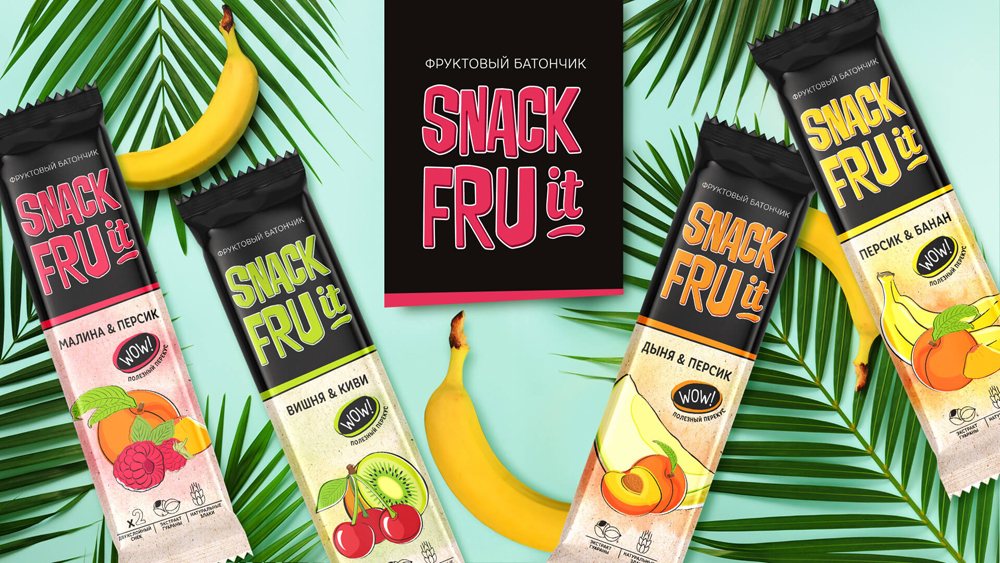 Команда BrightPack разработала дизайн-концепцию упаковки для натуральной снековой линейки под брендом SNACK FRUit. Линейка включает в себя фруктовые батончики без сахара, красителей и искусственных добавок.
