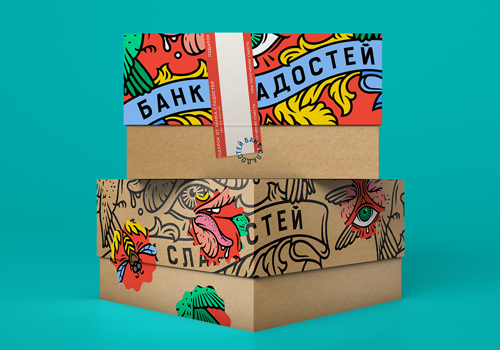 Студия Hattomonkey разработала логотип кондитерской, концепцию фирменного стиля и дизайн носителей. Защищенная от подделок упаковка, гильош-стикеры, «бандерольки» создают образ волшебного банка.
