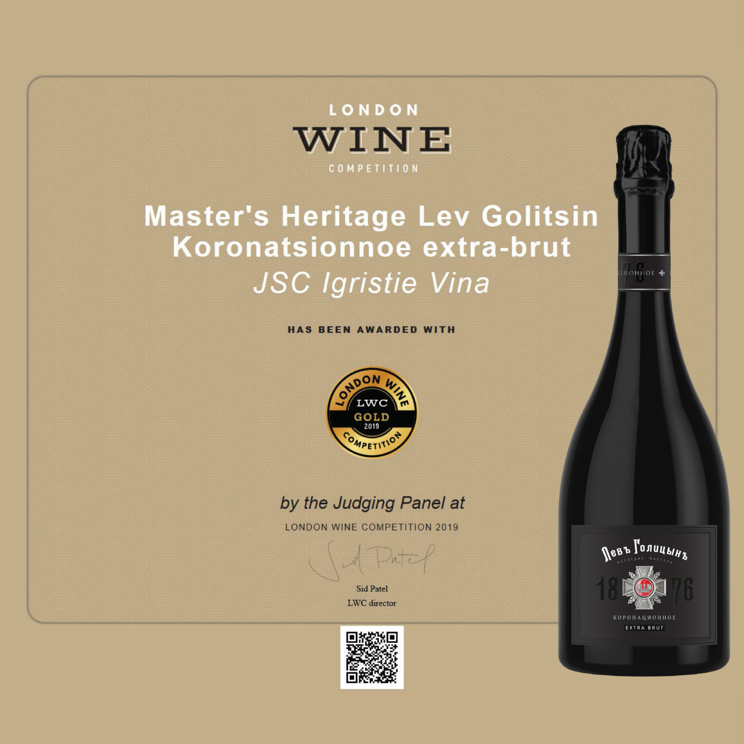 «Наследие мастера «Левъ Голицынъ. Коронационное» Extra brut» — представитель коллекции игристых вин, созданной знаменитым энологом Умберто Менини для Санкт-Петербургского завода «Игристые вина 1876» получил золотую награду London Wine Competition '2019.