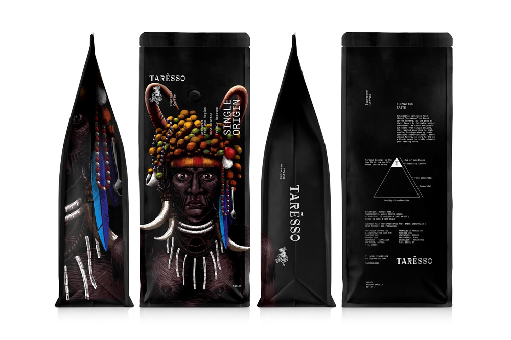 Греческая студия Luminous Design Group создала дизайн упаковки для чистосортного кофе Taresso. В айдентике дизайнеры состредоточились на теме происхождения кофе.
