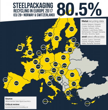 Согласно данным, опубликованным Ассоциацией европейских производителей стали для упаковки (APEAL), степень вторичной переработки стальной тары и упаковки в Европе достигла нового максимума в 80,5%.