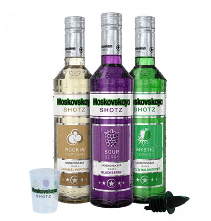 Линейка ликеров «Moskovskaya SHOTZ» представлена тремя уникальными вкусами, соединившими в себе все самые яркие молодежные тренды: «Rockin‘ Popcorn» (Заводной попкорн) - насыщенный сладкий вкус карамельного попкорна; «Mystic forest» (Мистический лес) - свежий фруктовый вкус, сочетающий микс яблока и тархуна; «Sour berry» (Кислая ягода) - интенсивный вкус темной ежевики, сочетающий приятную сладость с пикантной кислинкой.