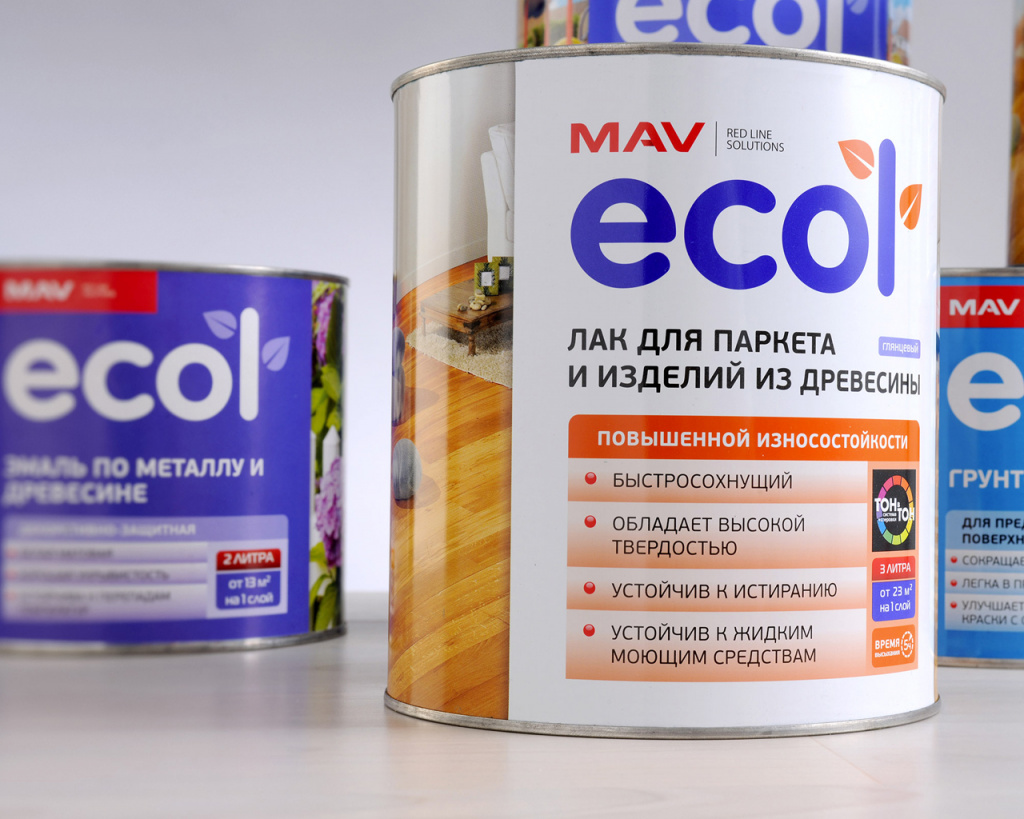 MAV сегодня – это современная, качественная, наукоёмкая лакокрасочная продукция со следующими брендами: FLAGMAN – водно-дисперсионные акриловые лакокрасочные материалы для профессионального ремонта; ECOL –комплекс водно-дисперсионных лакокрасочных материалов, а также традиционные органические материалы оптимальных потребительских качеств; BRAVA – высококачественные водно-дисперсионные акриловые, полиуретановые и водно-дисперсионные полиуретановые ЛКМ для комплексной защиты и отделки изделий из древесины.