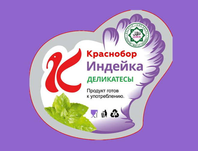 Для новой упаковки была разработана уникальная этикетка в виде силуэта птицы индейки. Это было сделано для того, чтобы выделить продукт на полке среди конкурентов, а также с целью подчеркнуть, что в мясные деликатесы и колбасные категории ЗАО «Краснобор» не добавляет других видов мяса.