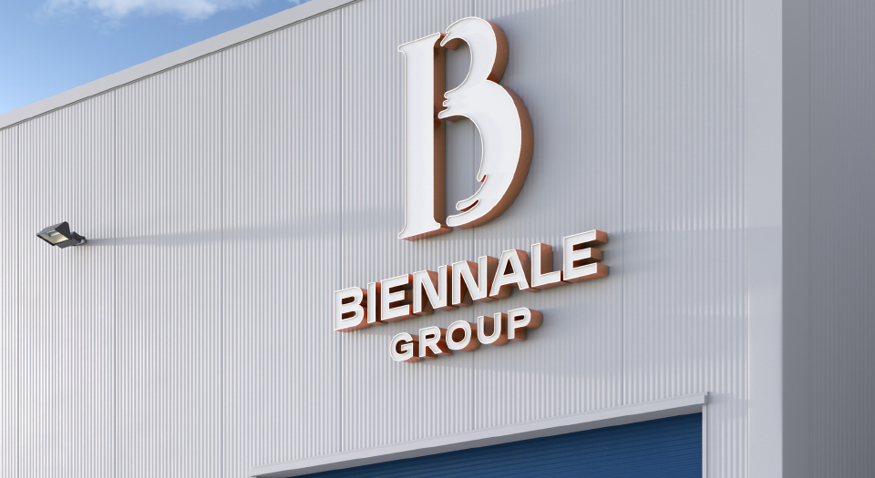 Для нового бренда был разработан логоблок, состоящий из знака и логотипа. Заглавная буква названия Biennale является знаком, состоящим из двух многозначных элементов: римской цифры «один», отражающей первенство компании, и мазка шоколадной кисти, символизирующего «творческие» коннотации бренда.