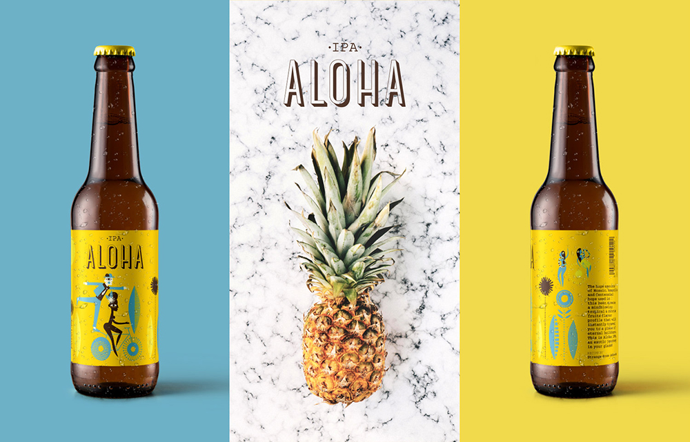 Aloha IPA - летнее пиво с тропическим вкусом. В греческой студии polkadot design разработали для бренда новый дизайн упаковки, который отражает экзотический вкус пива.