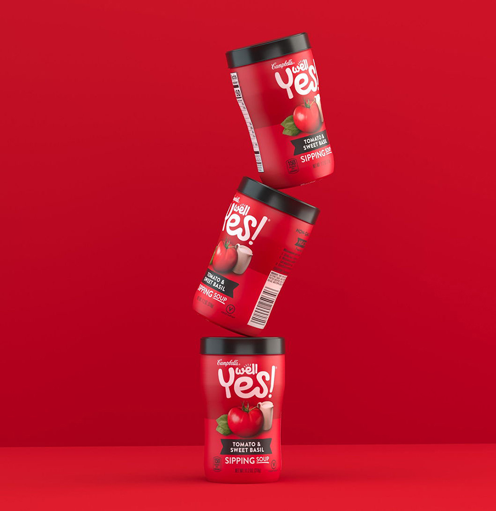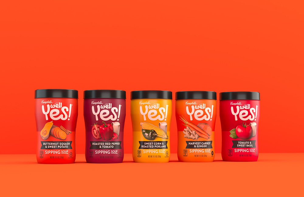 Студия Bulldog Drummond создала яркий дизайн упаковки для линейки супов Well Yes! от известного бренда Campbell’s. Цвета помогают буквально "выпрыгивать" с магазинной полки, в то время как изображения ингредиентов помогают понять состав.