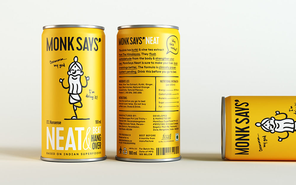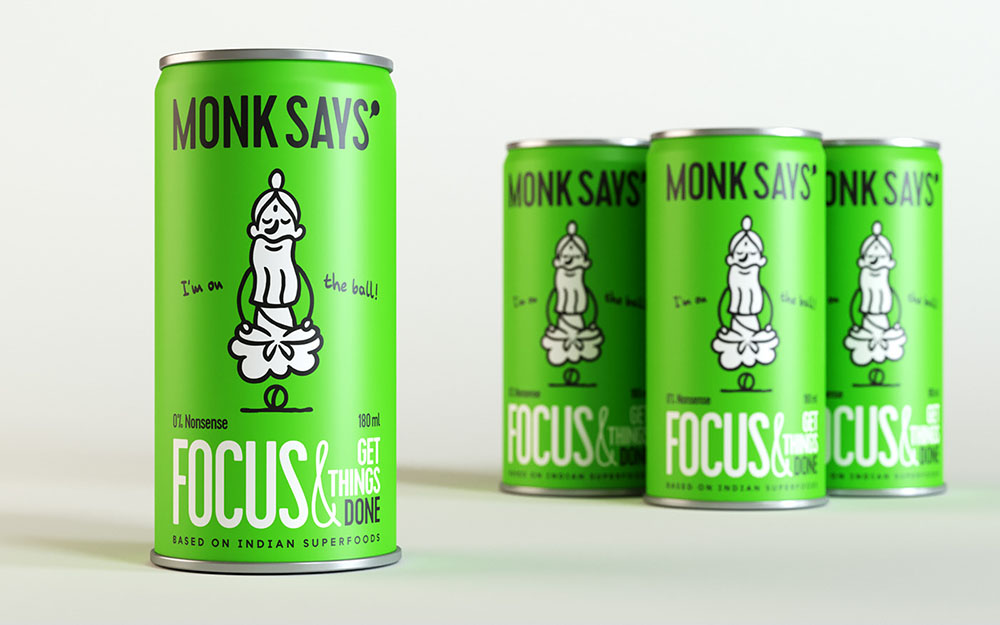 Студия Openmint разработала дизайн упаковки для натуральных напитков из Индии Monk Says.