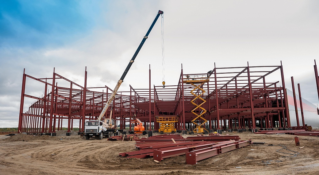 Кроме того, больше чем на половину завершено устройство внутренних площадок и дорог, а также песчаного основания под плиту пола основного здания. В ближайшее время на строительной площадке начнутся работы по устройству внутренней канализации и возведению плиты пола с песчаным покрытием. На август текущего года в строительстве задействовано 120 рабочих и 15 единиц техники.