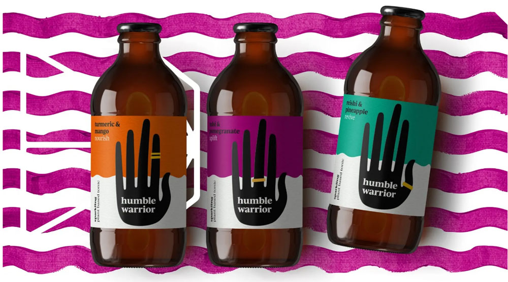 Газированные растительные тоники Humble Warrior черпают вдохновение в восточных травах и специях и древней Аюрведе. Несмотря на пользу и натуральный состав, для привлечения покупателя бренду понадобился новый дизайн упаковки, который разработали в студиях Derek&Eric и Silas Amos.