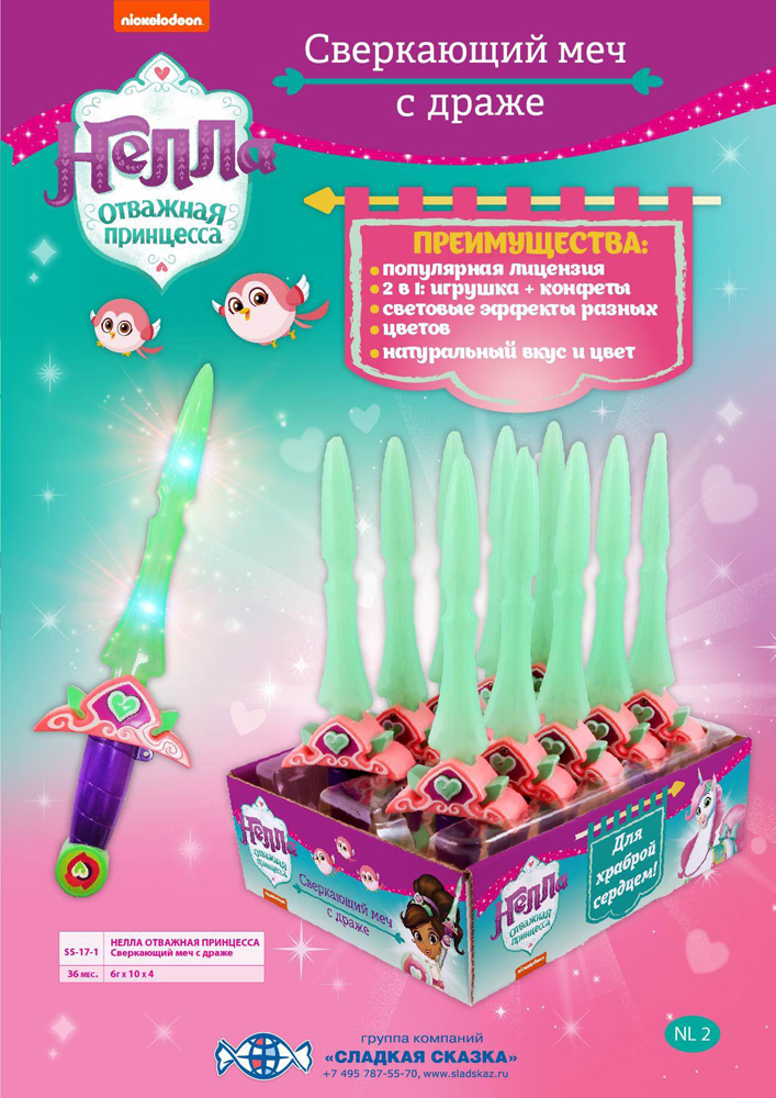 Компания "Сладкая сказка" представляет новую лицензию, которая приведёт всех маленьких девочек в восторг — "Нелла, отважная принцесса". Первым продуктом, который вышел в категории "Игрушки с конфетами" стал светящийся меч принцессы с сахарным драже.