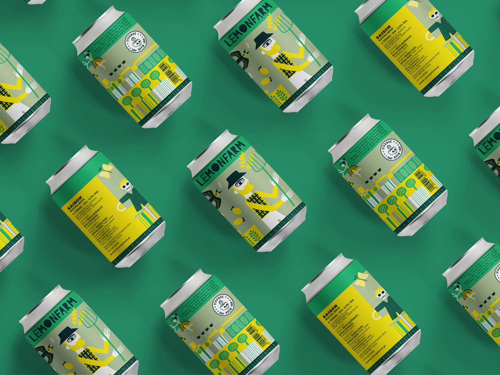 Греческая студия polkadot design разработала дизайн упаковки для пива Lemonfarm. Это бренд от греческой пивоварни Strange Brew.