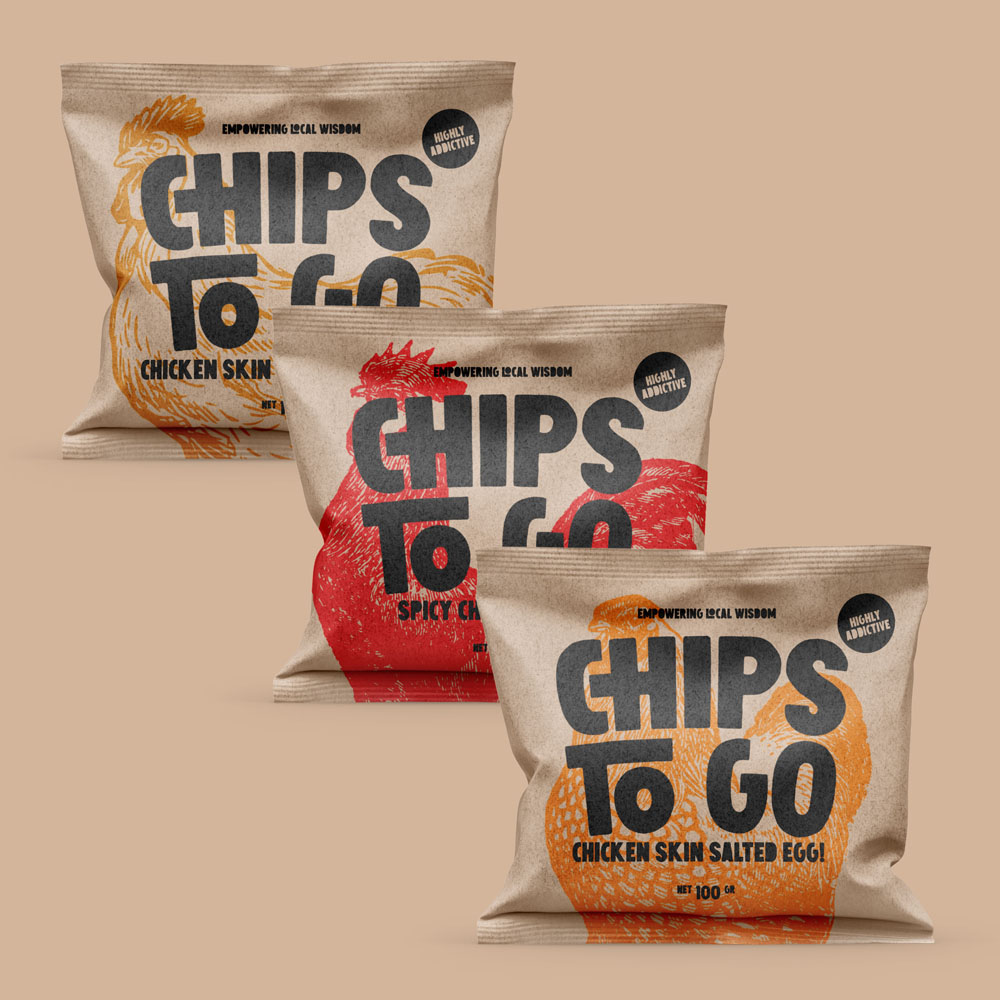 Индонезийская студия Widarto Impact разработала дизайн упаковки для местного снека из куриной кожи Chips To Go. Задача бренда – сделать местную продукцию популярной, задача дизайнеров – оформить продукт привлекательным и современным способом.