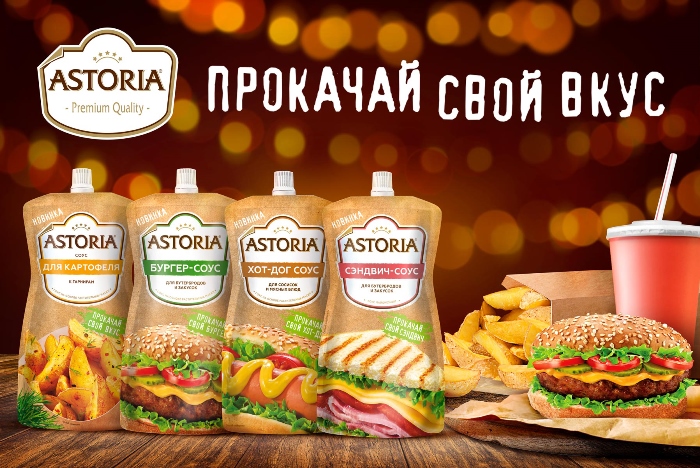 Нижегородский масложировой комбинат выпустил новую линейку соусов под ТМ Astoria. В линейку вошли соус для бургеров, хот-догов, сэндвичей, для картофеля по-деревенски и фри.