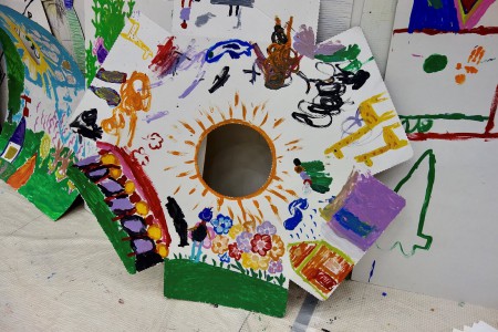 Предприятие оказало спонсорскую помощь, предоставило бумажные материалы и гофрокартонные арт-объекты (большой паровоз, маяки, домики), которые дети и их родители смогли разрисовать по своему желанию.