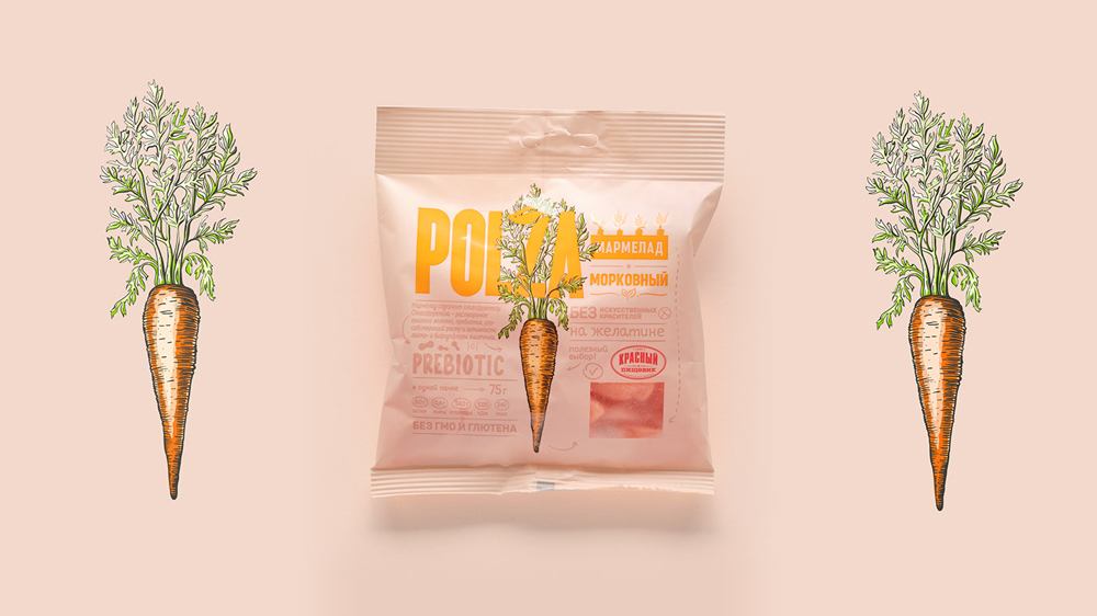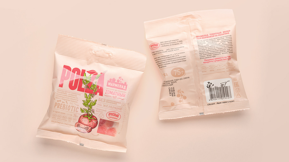 Следуя мировому тренду на полезные перекусы, белорусская компания "Красный пищевик" выпустила необычный овощной мармелад Polza. Дизайн упаковки разработали специалисты агентства PG.