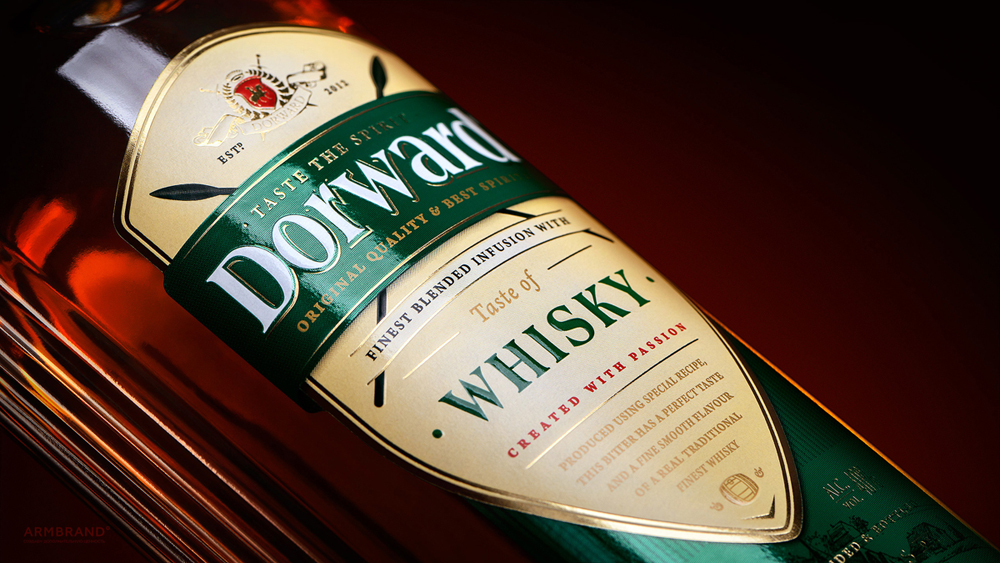 Для этого дизайнеры «ARMBRAND» обратились к геральдике, создающей коммуникацию «европейского продукта с историей», и к использованию элементов, характерных для оформления виски.