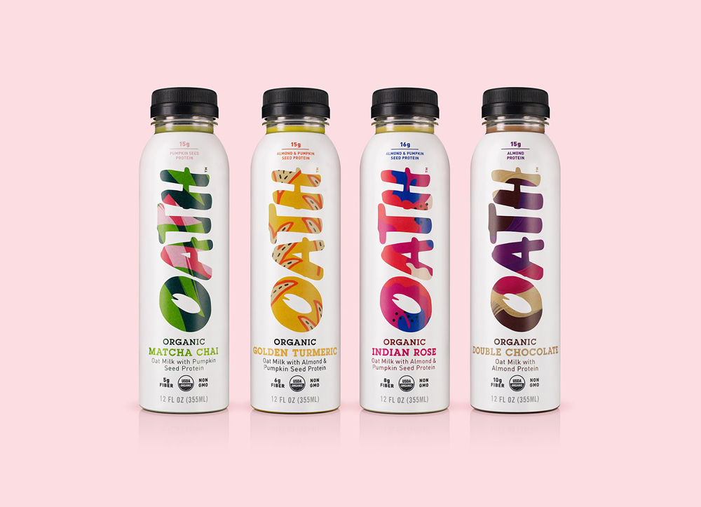 Студия B&B Studio (Великобритания) разработала дизайн упаковки для функциональных напитков OATH. Это органические напитки на основе овсяного молока, они продаются на территории США.