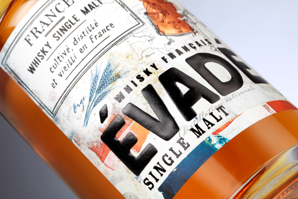 Производитель Whiskies Du Monde представил свой первый французский виски ÉVADÉ. Бренд и дизайн упаковки создавался специалистами студии LINEA. Культурный плюрализм лег в основу дизайна упаковки.