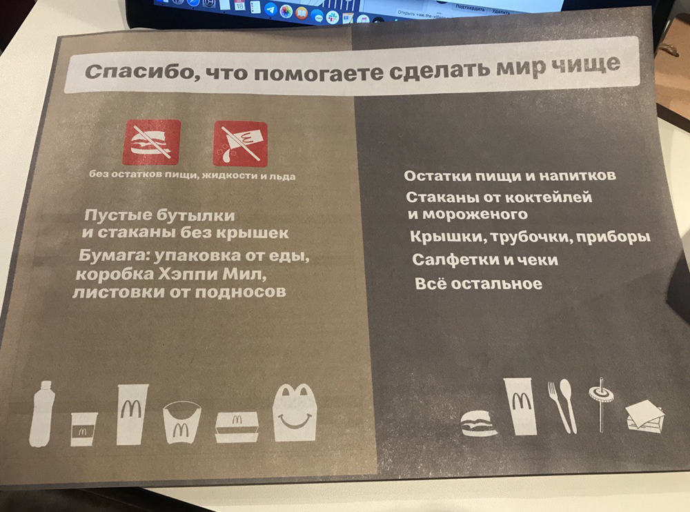 К 2025 году Макдоналдс планирует внедрить систему разделения отходов на предприятиях сети во всём мире.