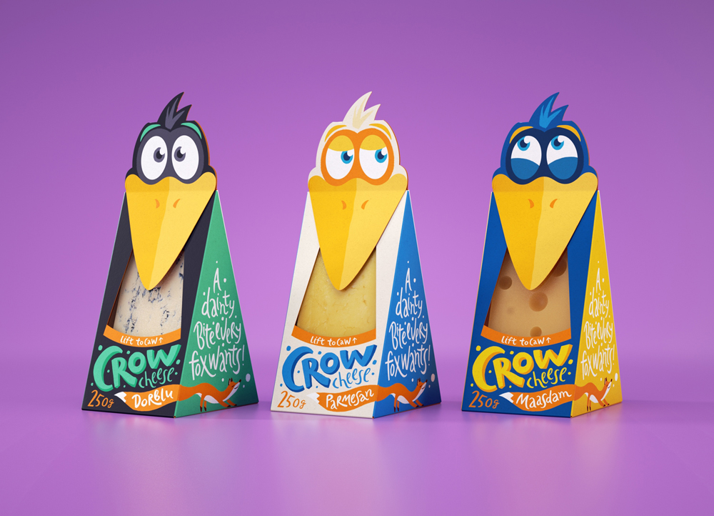 Агентство Redindesign представляет дизайн упаковки для сыра Crow Cheese. В основе лежит известная басня о вороне и сыре.