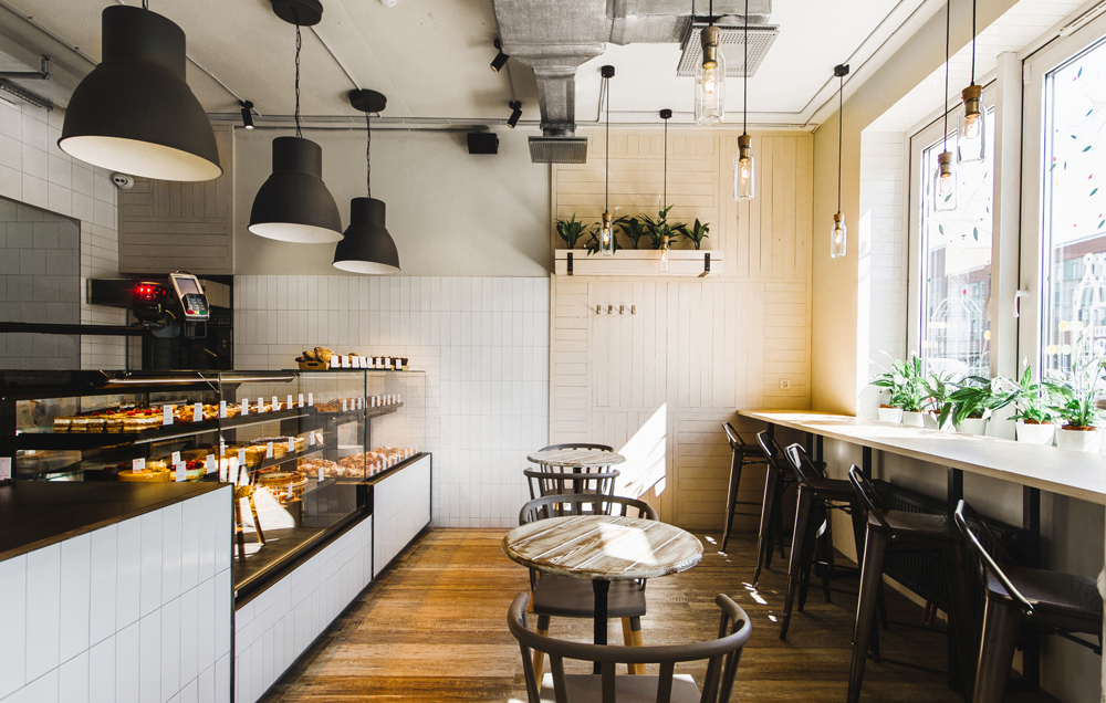 Айдентика имеет очевидные родственные черты с родительским брендом — буше. Но только в этот раз основой графики выступают не питерские текстуры, а теплый солнечный свет, создающий на стенах образы теплого хлеба.
