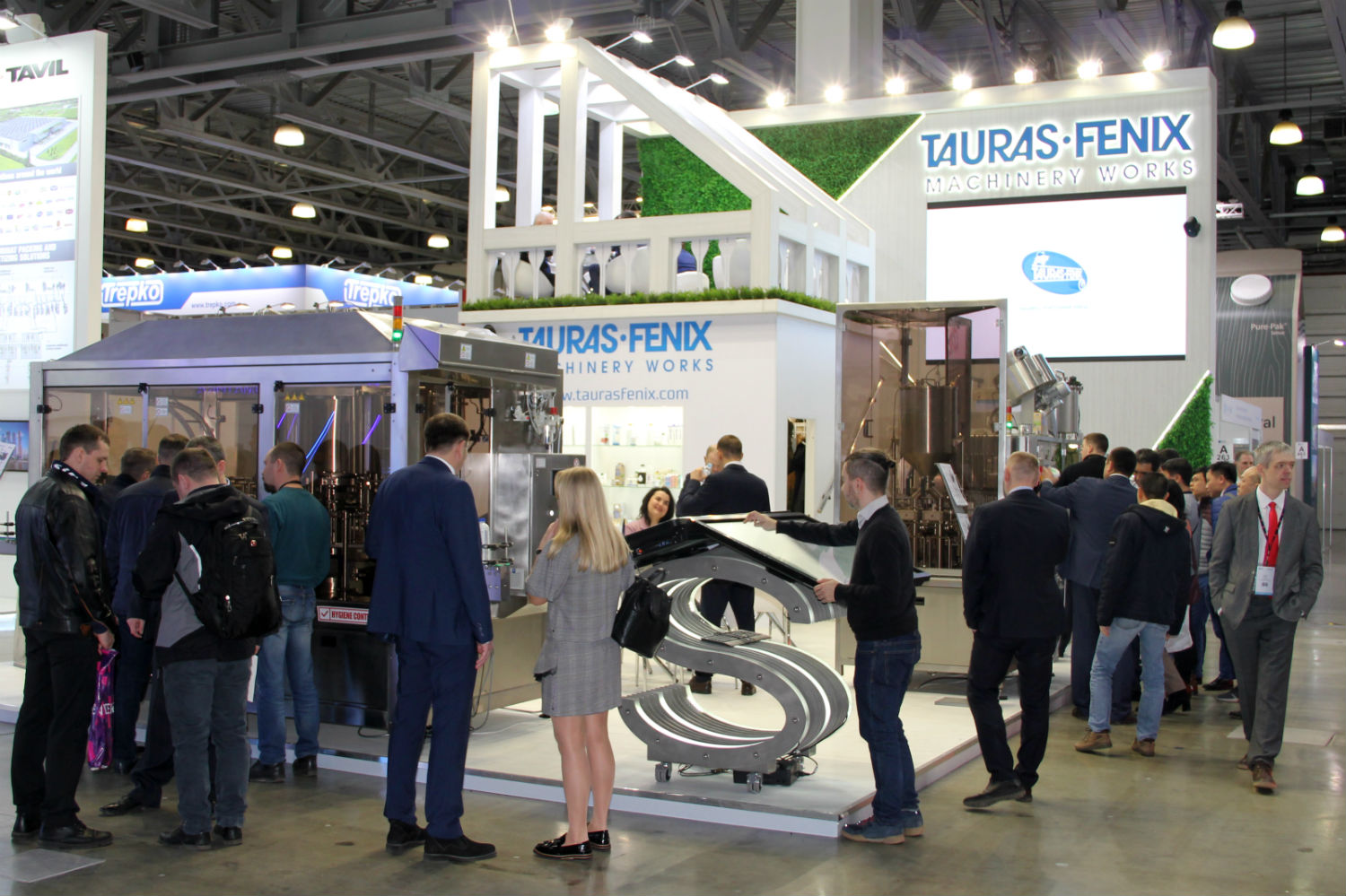 Помимо этого, на стенде «ТАУРАС-ФЕНИКС» можно было увидеть «ТРИБЛОК 3000», разработанный для розлива жидких и вязкотекучих молокопродуктов в ПЭТ-бутылки и укупорки их методом закручивания пластмассовыми крышками с предохранительным кольцом. Металлические узлы и детали машины, контактирующие с пищевыми продуктами, выполнены из коррозионно-стойких материалов, разрешённых органами Роспотребнадзора. Машина розлива непрерывного действия объединяет в себе машины для последовательного выполнения трёх функций технологического процесса: ополаскивания, розлива, укупоривания. На выставке машина демонстрировалась с квадратной в сечении бутылкой.