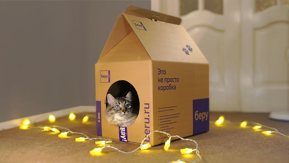 Маркетплейс "Беру" упаковывает товары в кошачьи домики