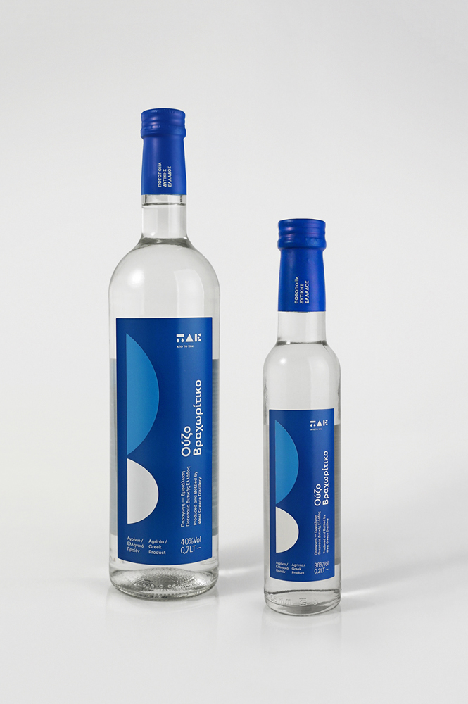 Цель заключалась в создании ауры Греции современным минималистичным способом, без использования клише. Дизайнер создал простой образ с применением общепринятого цветового кода для категории алкогольных напитков: синего для узо и черного для ципуро. Главным элементом этикетки стала геометрическая буква “B” – первая буква в названии бренда “Vrachoritiko”, который на греческом звучит как “Βραχωρίτικο”.
