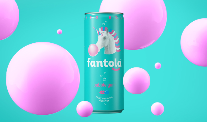 Дизайнерами была разработана линейка новых продуктов Fantola с яркими и необычными вкусами: «Orange Cola», «Mango Trio» и «Bubble Gum». В первую очередь, было необходимо выбрать единое цветовое решение, которое бы позволило выделить продукты линейки среди конкурентов. Именно поэтому был выбран цвет Тиффани, ранее не представленный в данной категории.