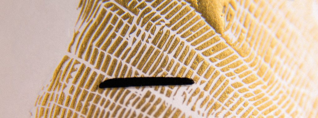 Изображение годичных колец на этикетке было получено в результате нанесения золотой краски вместе с тиснением.