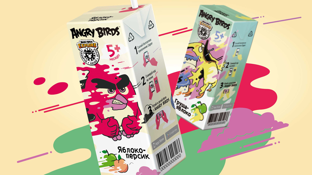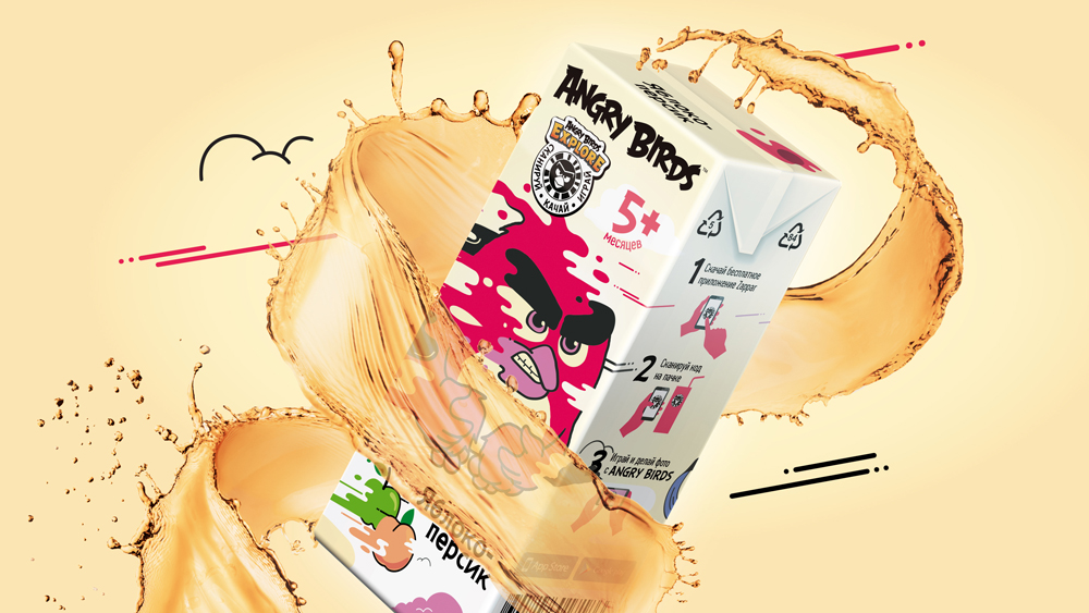Перед специалистами студии стояла задача сделать редизайн упаковки соков и нектаров в стилистике Angry Birds. Учитывая возрастные особенности целевой аудитории и количество конкурирующих предложений на рынке, было важно, чтобы товар своим внешним видом мог обратить на себя внимание детей и вызвать непреодолимое желание приобрести именно его.