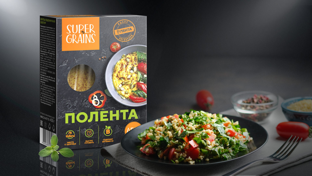 На сегодняшний день линейка Super Grains включает в себя 5 видов круп: полба, полента, киноа, булгур и кускус. При этом дизайн-концепция была разработана с учетом возможного расширения линейки: в случае увеличения количества ассортиментных позиций дизайн упаковки можно с легкостью адаптировать под новые виды круп.