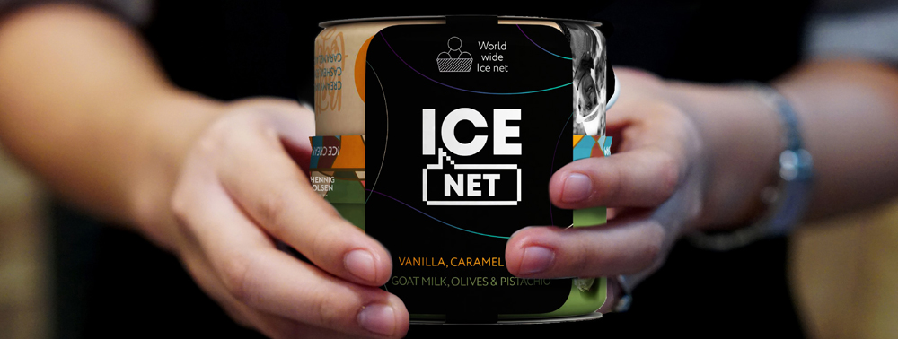 Первый бренд мороженого ICE NET - это история про динамичный дизайн, где постоянно обновляются сообщения о поиске друзей. И, покупая упаковку, покупатель выбирает еще и пост о ком-то, кто тоже в поиске. Собеседник может быть рядом, а может быть на другом континенте. Форма - бумажная упаковка и деревянная ложечка внутри. Два бумажных стаканчика с разным мороженым закрыты единой крышкой с двойной внутренней стороной. Это намек на совместное употребление продукта.