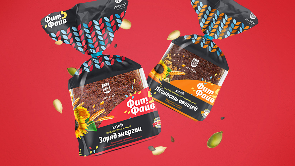 Для хлебокомбината "Инской" (Новосибирск) студия KIMA by Coruna Branding разработала новую линейку хлебов для приверженцев здорового образа жизни. В студии придумали название — "ФитФайв", которое буквально трактуется как «форма на “пятерку“».