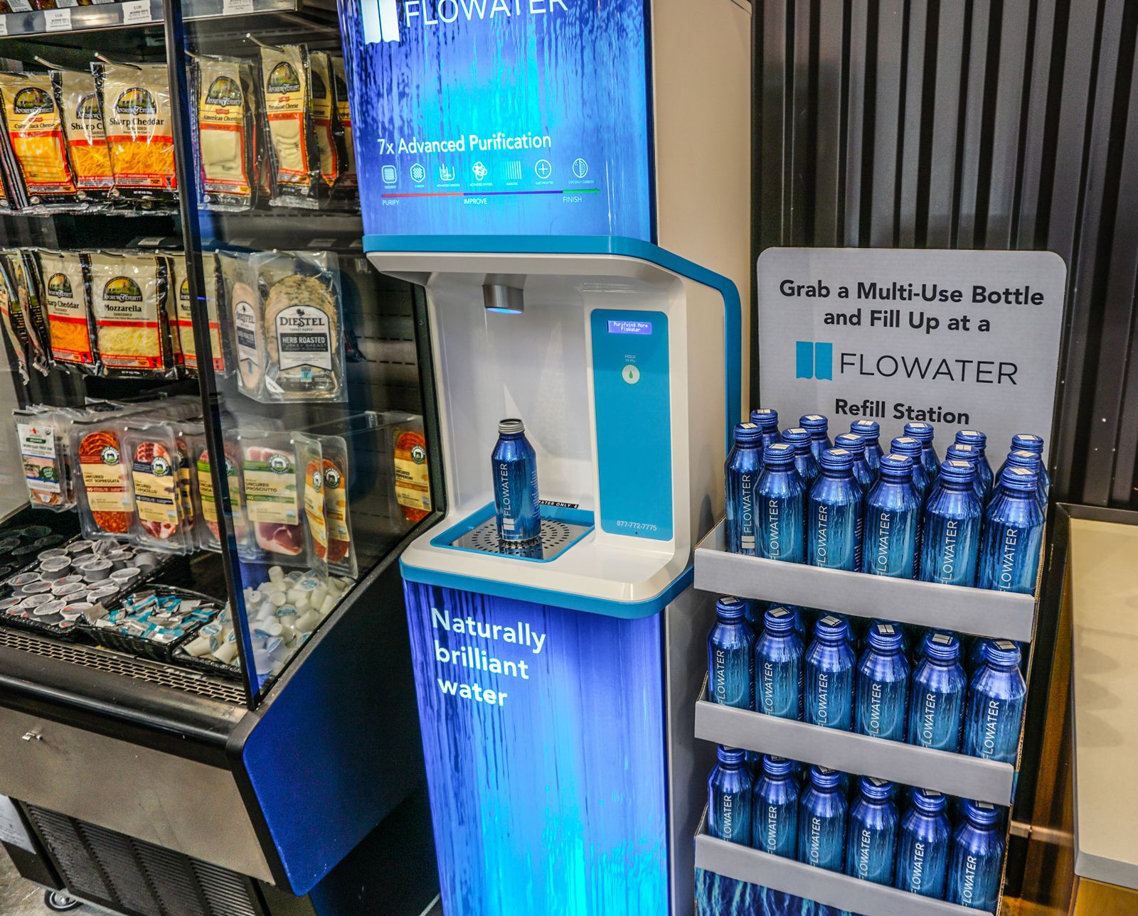 Благодаря дозирующим бесконтактным насадкам, станции розлива воды FloWater, как утверждается, полностью самоочищаются и предназначены для того, чтобы клиенты могли повторно наполнять свои многоразовые бутылки с водой и другие ёмкости.