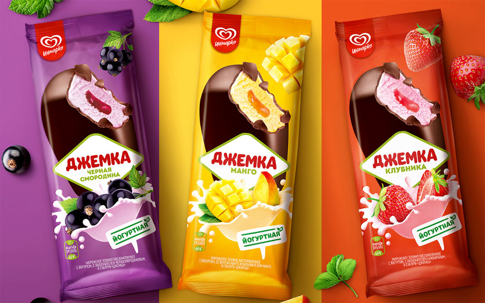 Дизайнеры брендингового агентства Depot обновили дизайн упаковки мороженого "Джемка" от компании Unilever.