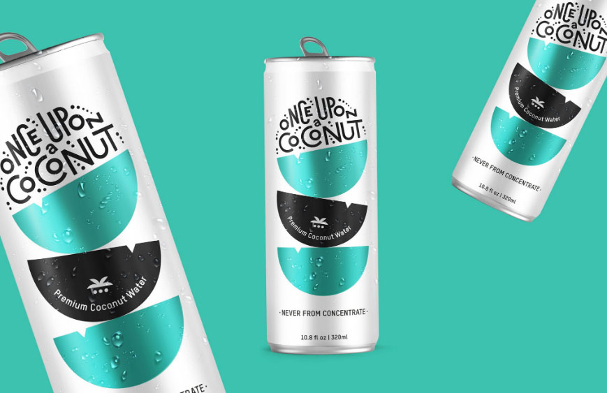 Компания Once Upon a Coconut представила современный и оригинальный бренд газированной кокосовой воды. Дизайн упаковки разработан внутри компании.