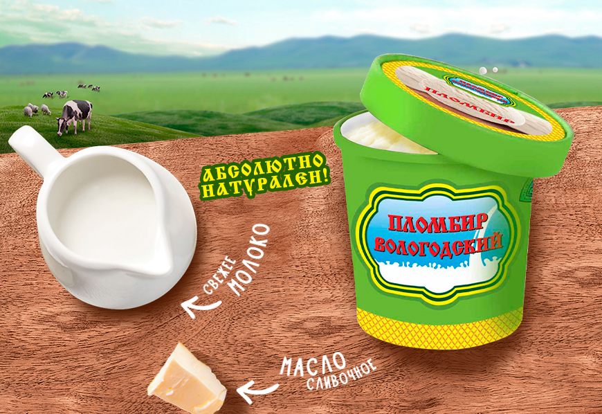 Вологодский пломбир приготовлен из качественного сырья, не содержит растительных жиров и полностью соответствует ГОСТу.