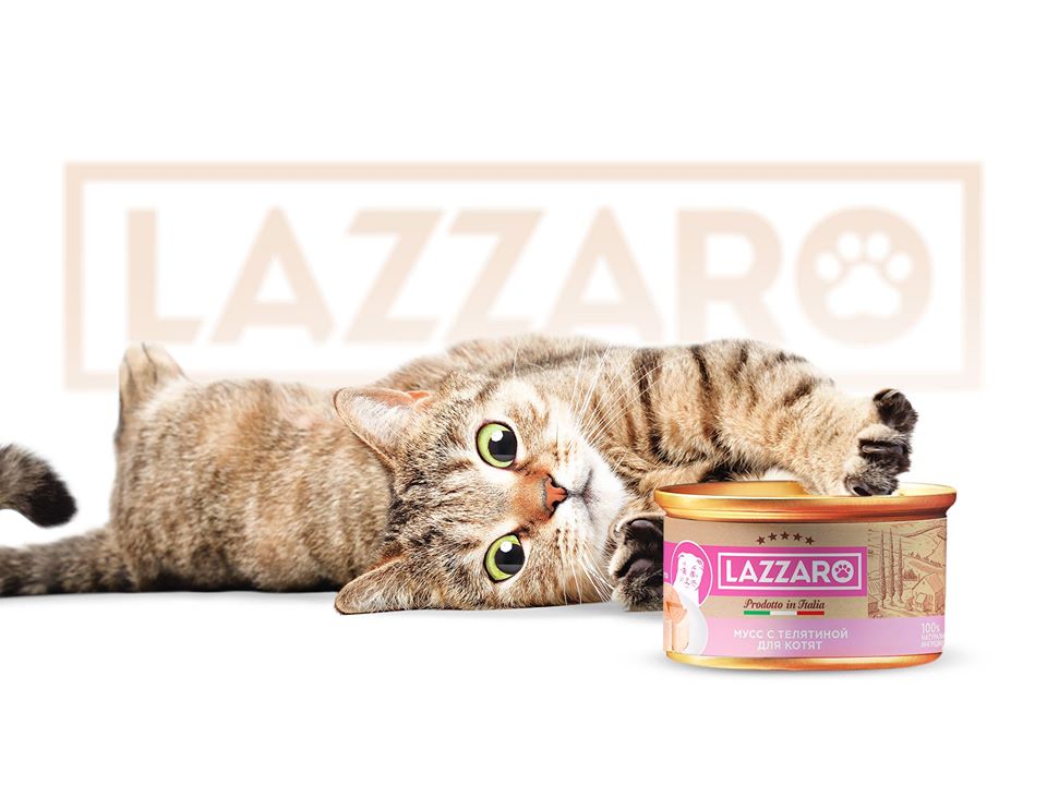 Брендинговым агентством Style You разработана линейка консервированного корма Lazzaro для кошек. Ранее дизайнеры агентства создали дизайн серии упаковок сухих кормов для кошек и собак Lazzaro. Сейчас необходимо было осуществить адаптацию дизайна упаковок на этикетку для консервированных влажных кормов для кошек, при этом сохранить стилистику, узнаваемость и серийность бренда.