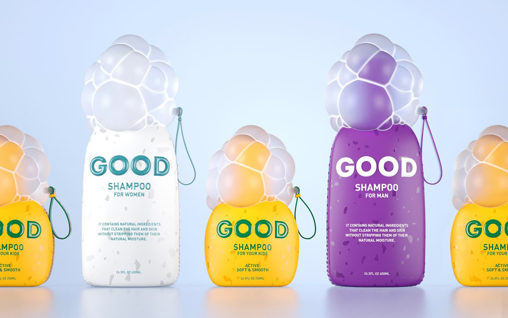 Белорусский дизайнер Константин Болимонд придумал и воплотил концепцию упаковки для шампуней Good shampoo. Оригинальный внешний вид флаконам придает сходство с мыльными пузырями.