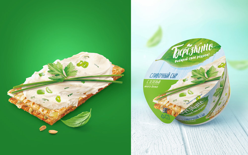 Фуд-зона позволяет не просто аппетитно показать продукт, но и служит своего рода подсказкой, с чем его можно употребить. Если творожный сыр щедро посыпать зеленью и зеленым луком, то бутерброд будет еще вкуснее.