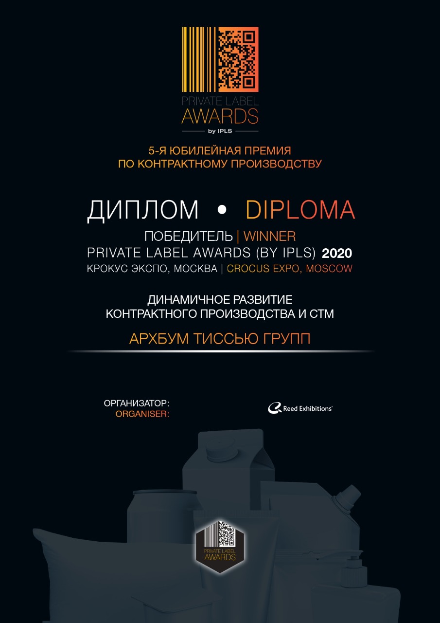 Высокое качество продукции, профессионализм, комфорт и уровень сервиса позволили ООО «Архбум тиссью групп» стать победителем в номинации «Динамичное развитие контрактного производства и СТМ» на 5-ой юбилейной премии по контрактному производству (Private Label Awards (by IPLS).