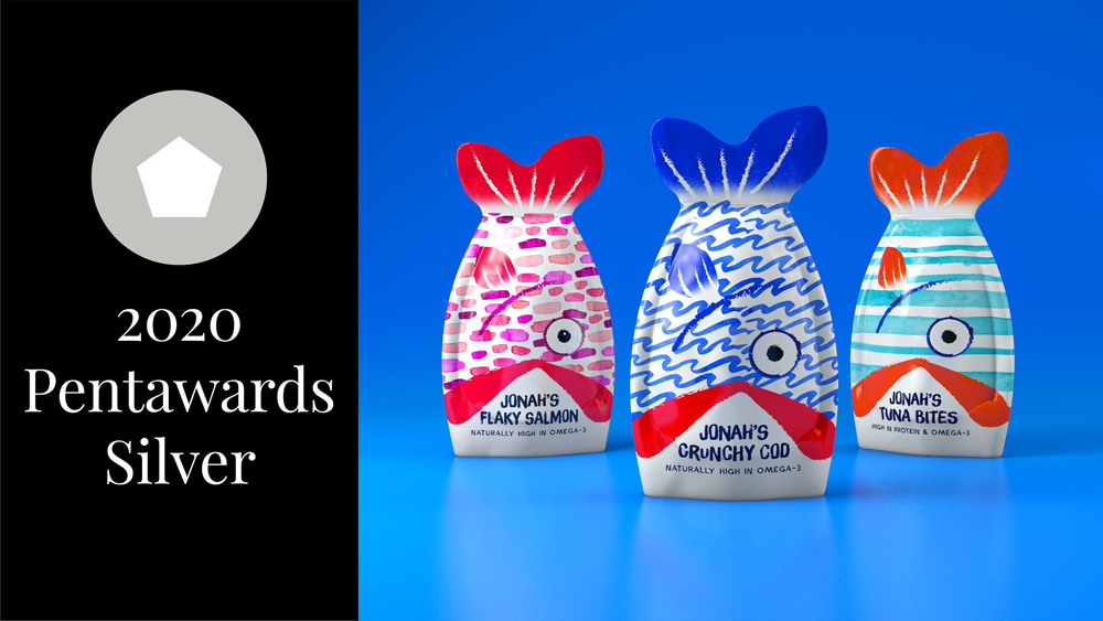Агентство SGK Anthem (Нидерланды) разработало концепцию дизайна упаковки замороженных рыбных снеков Jonah’s. Работа получила серебряную награду на упаковочном конкурсе Pentawards 2020.