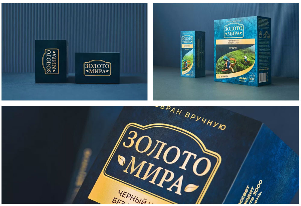 Нейм "Золото мира" презентует чай как большую ценность и отсылает к процессу производства продукта: флеш с двумя-тремя листами и стеблем называют сортовым или "золотым".