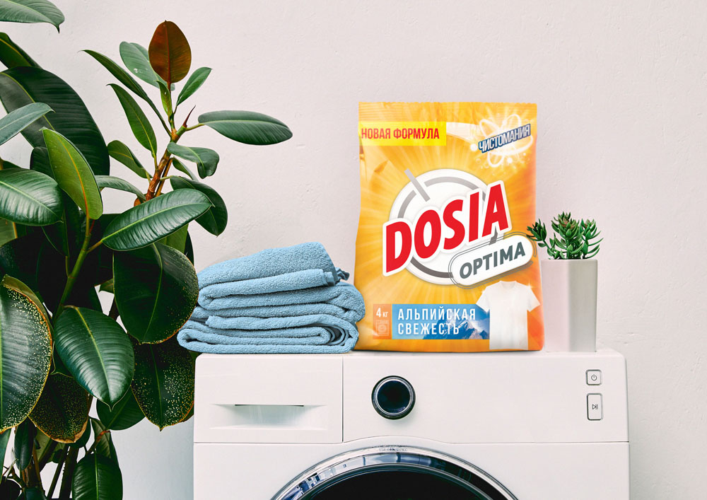 Команда Unibe разработала новый дизайн упаковки для известного бренда стирального порошка DOSIA.