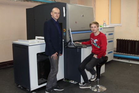 Главный инженер типографии Олег Викторович Хлопков, оператор HP Indigo Евгений Скирдонов.